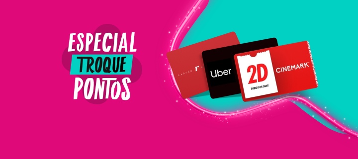 Ganhe 6 pontos por real em produtos selecionados e 4 pontos por real em demais produtos.